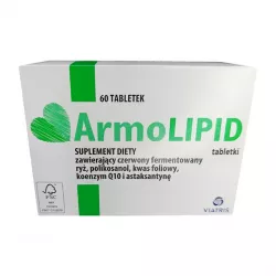 • Действующее вещество: комбинация монаколина (3мг, с красного ферментированного риса); фолиевой кислоты (0,2мг); коэнзима Q10 (2мг) и астаксантина (0,5мг)